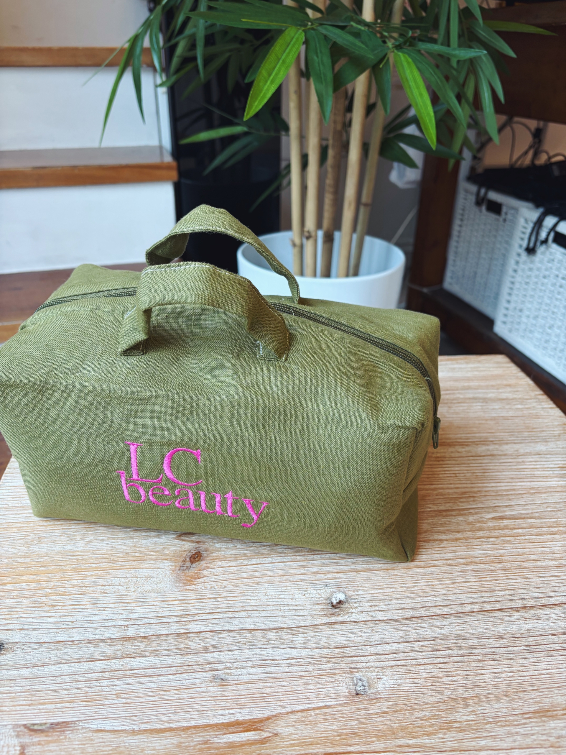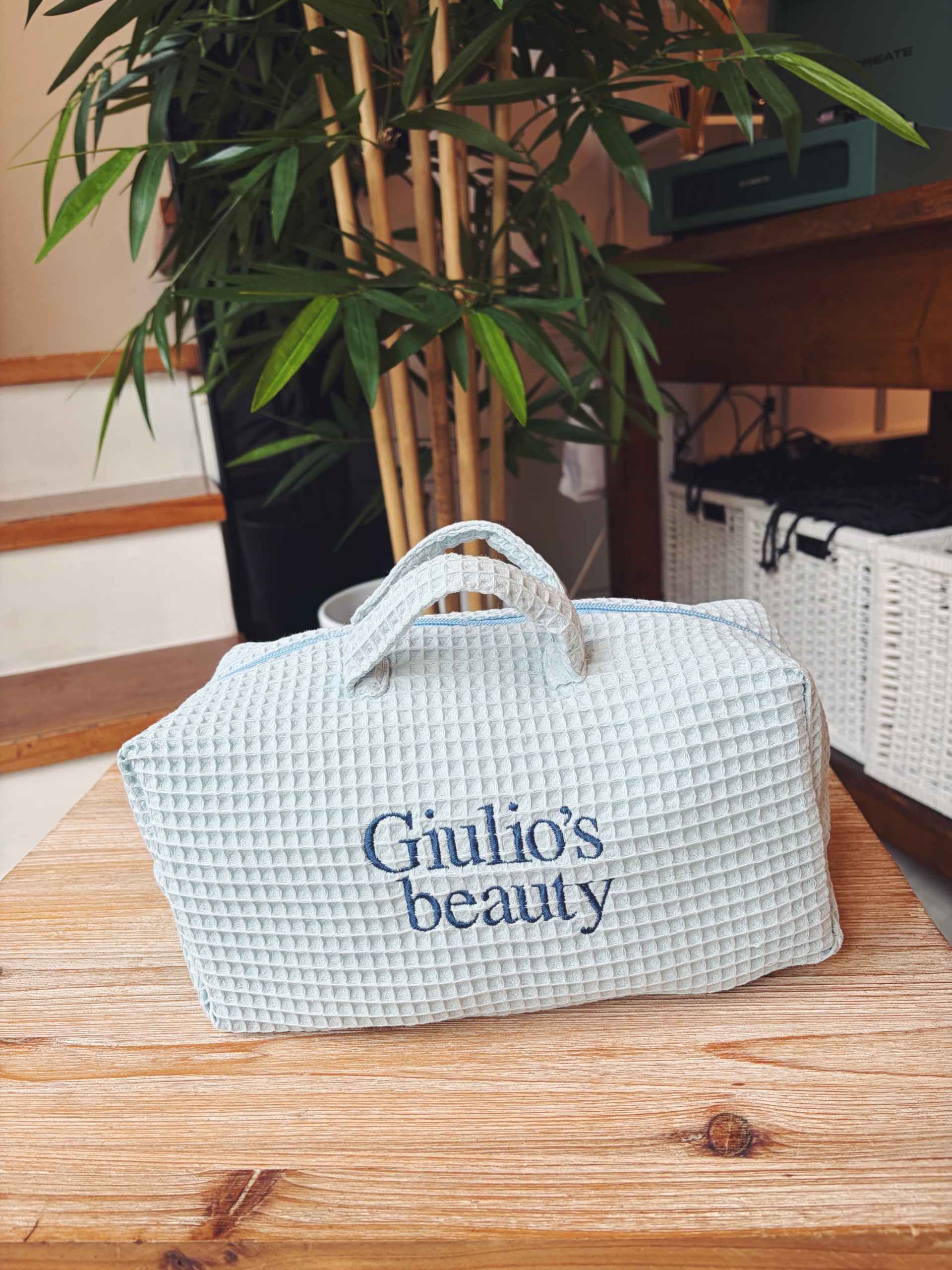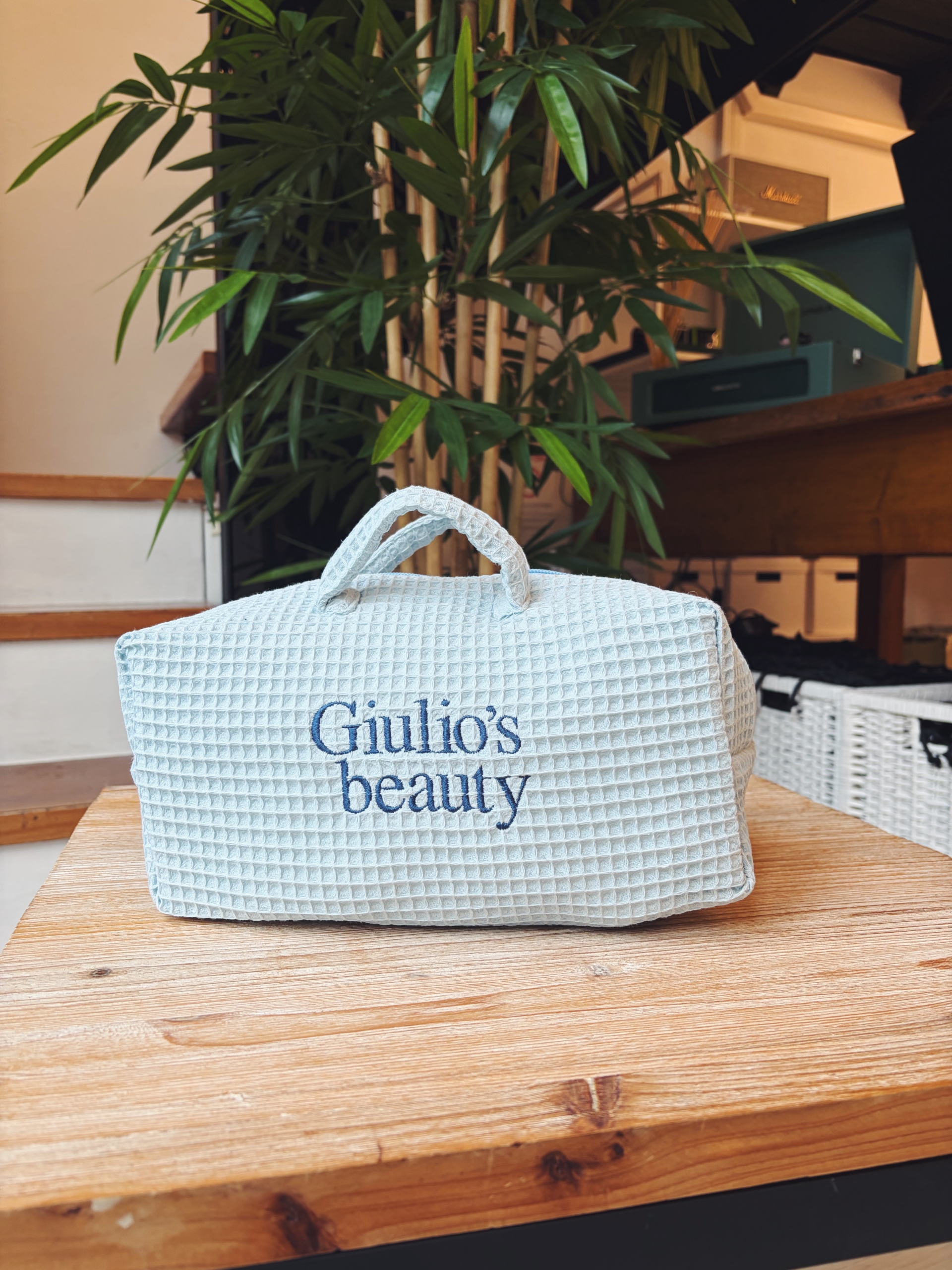 Ricamabile con le tue iniziali o il tuo nome in corsivo o stampatello, oppure con la dicitura “beauty” che più ti piace; quest’ultima è sempre in stampatello.