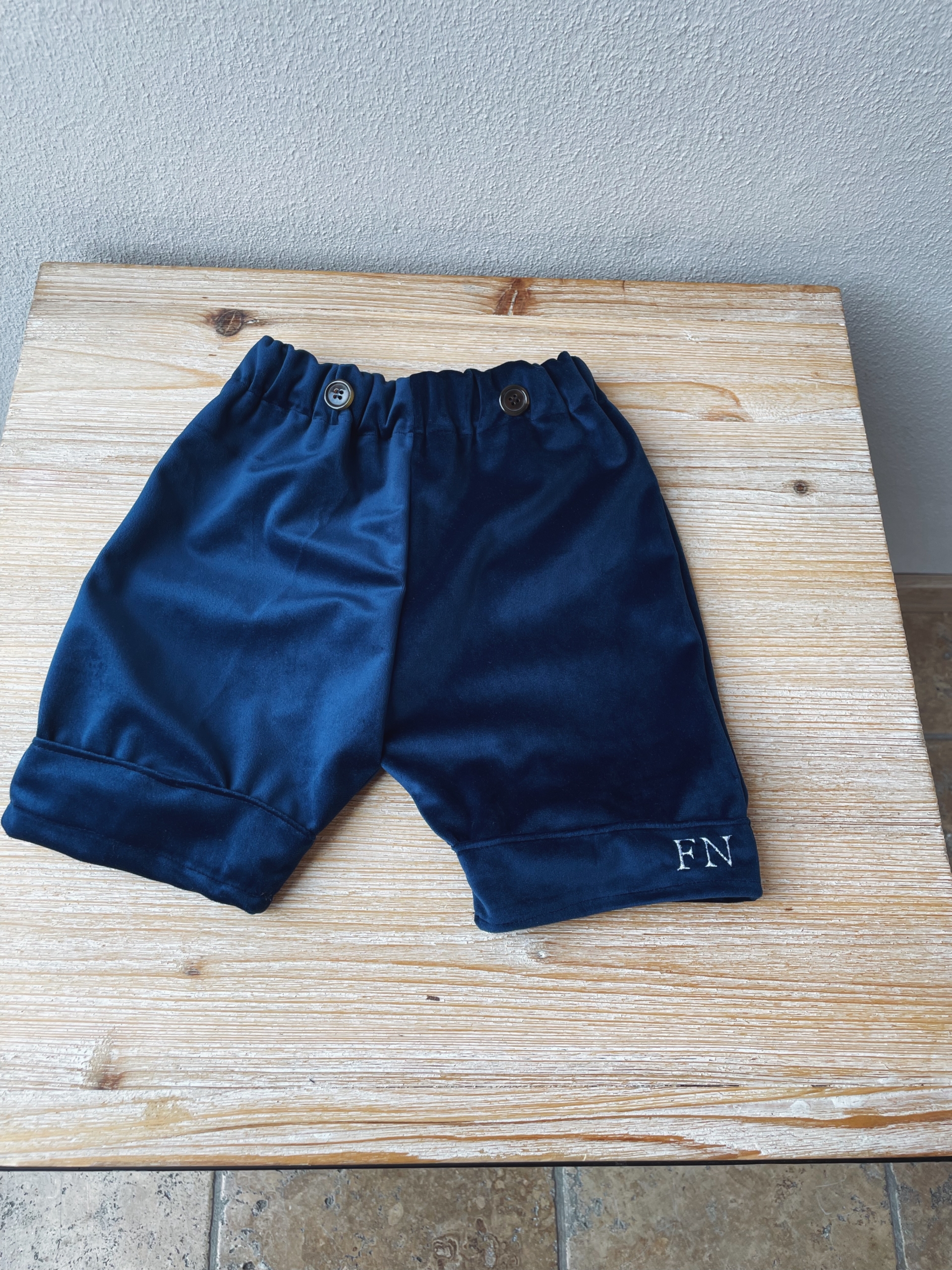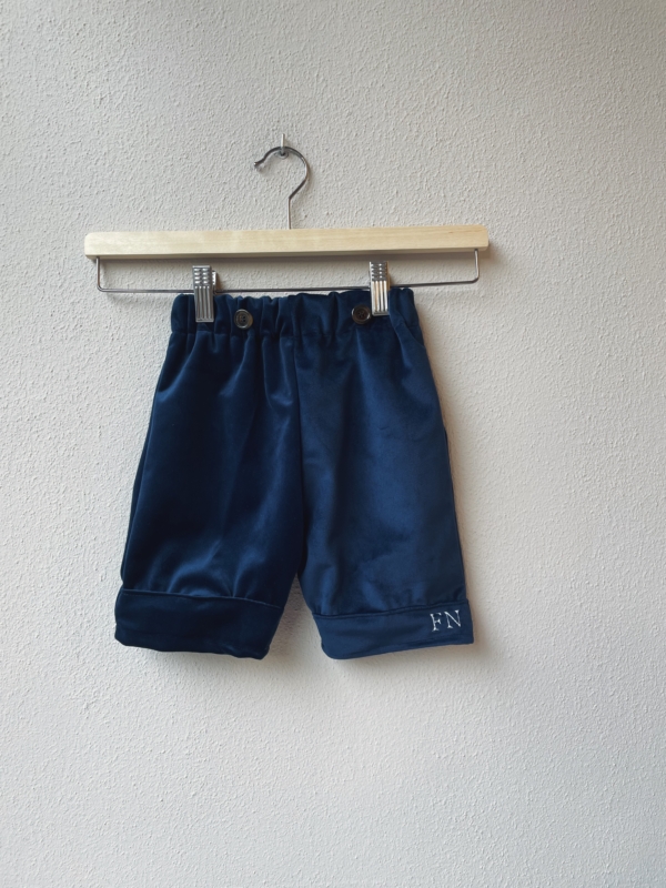 Bermuda sartoriale in velluto, con elastico in vita e due finti bottoni tartarugati.