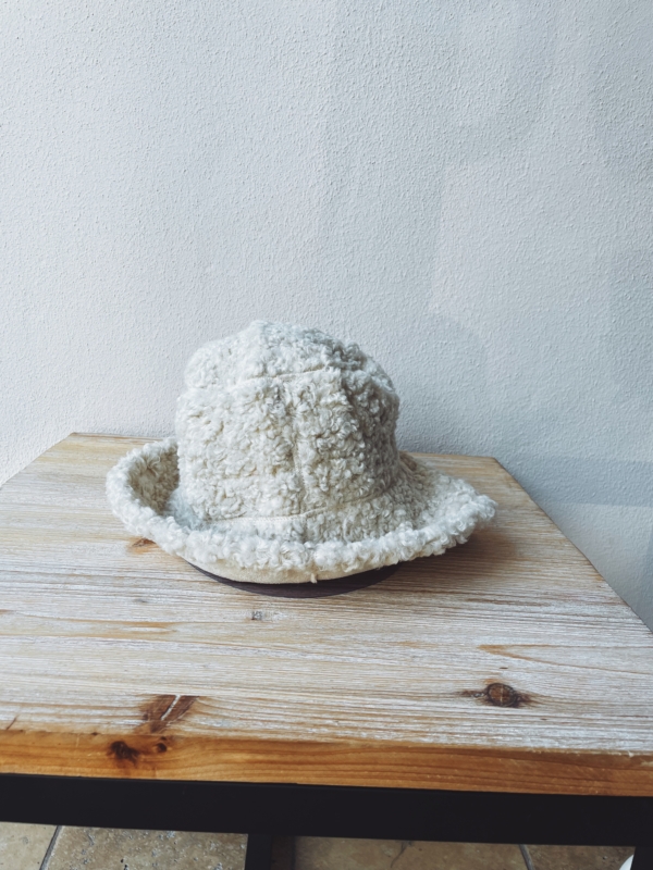 Cappellino a pescatore in tessuto bouclé ricamato.