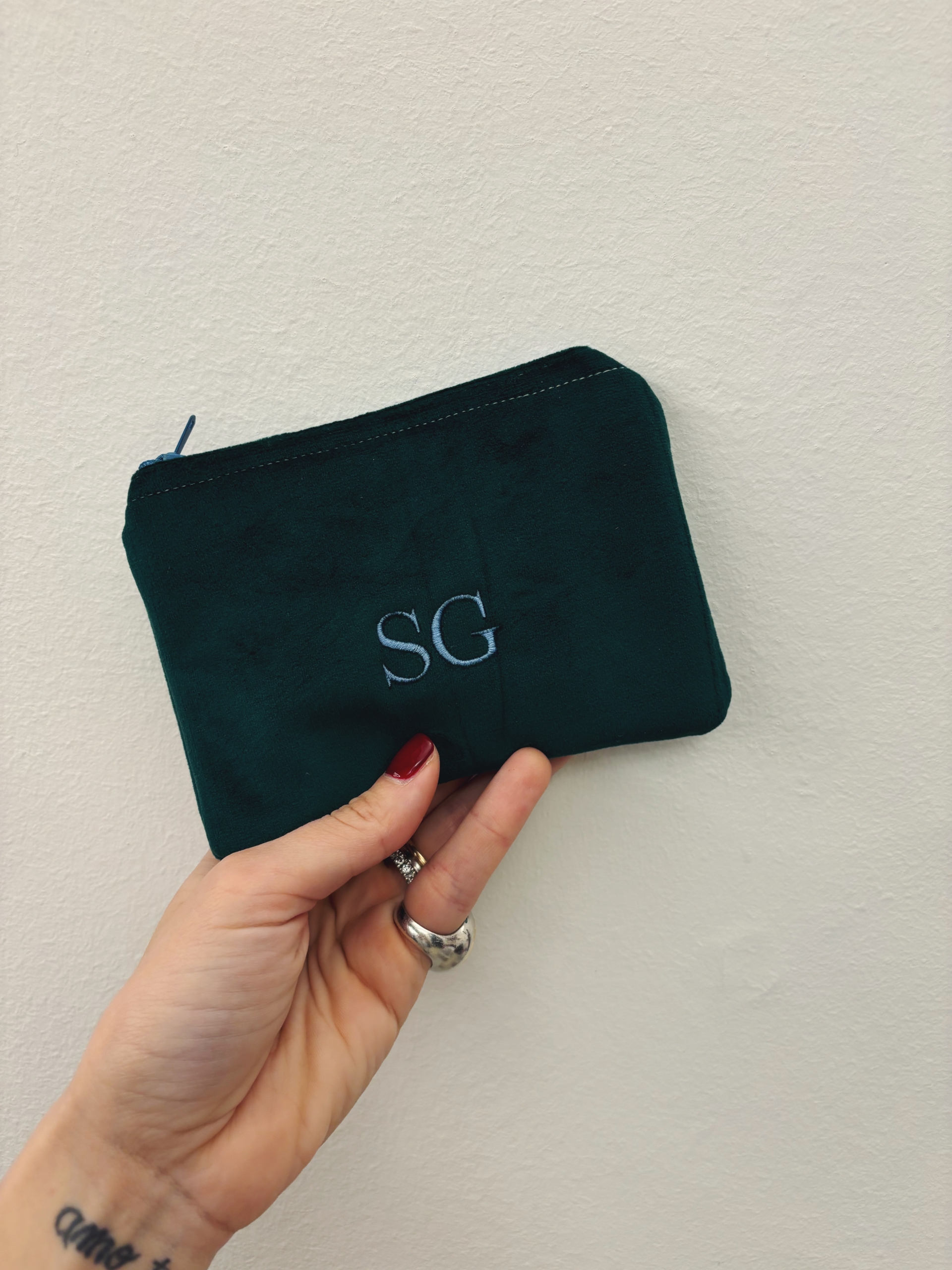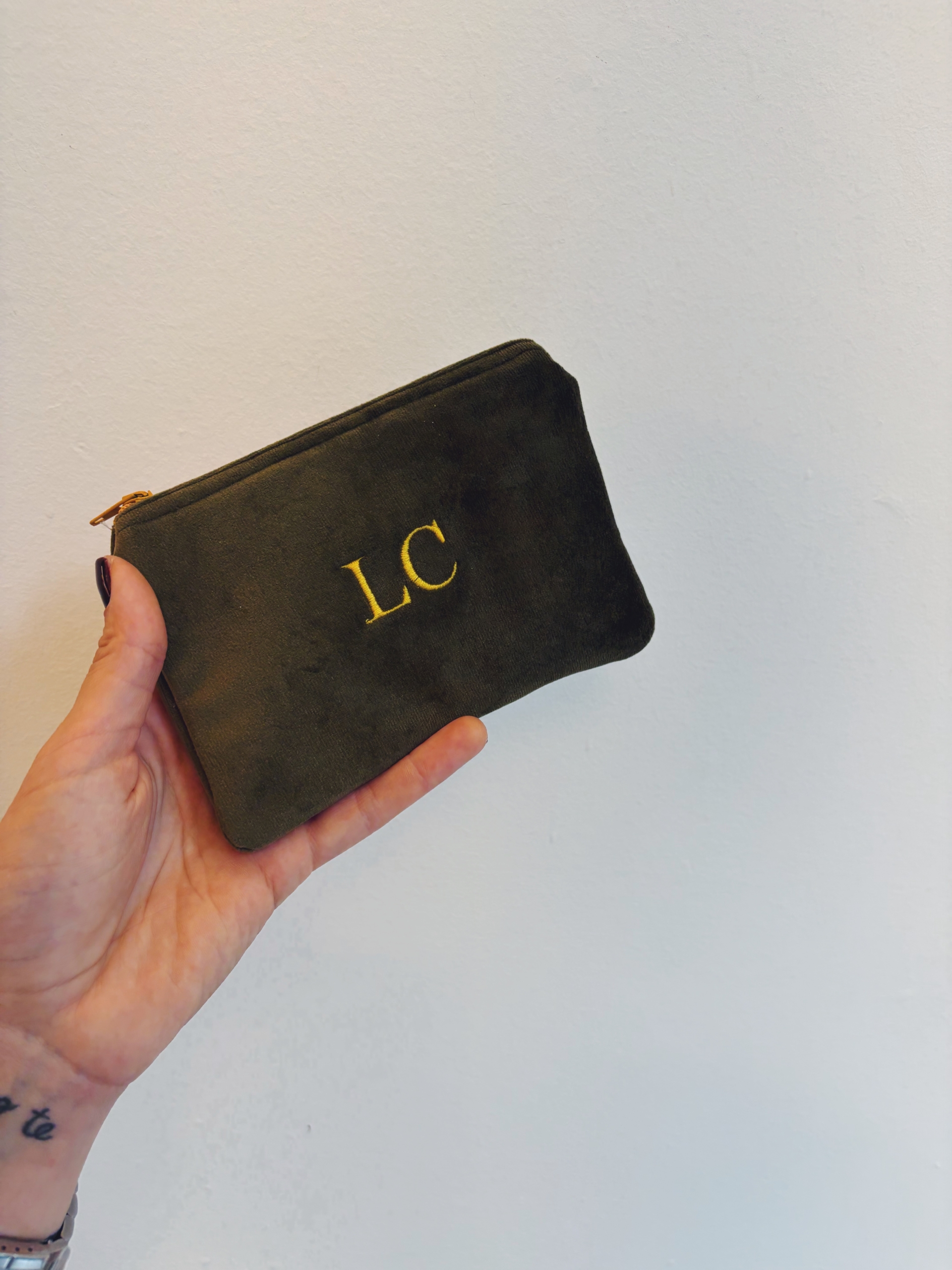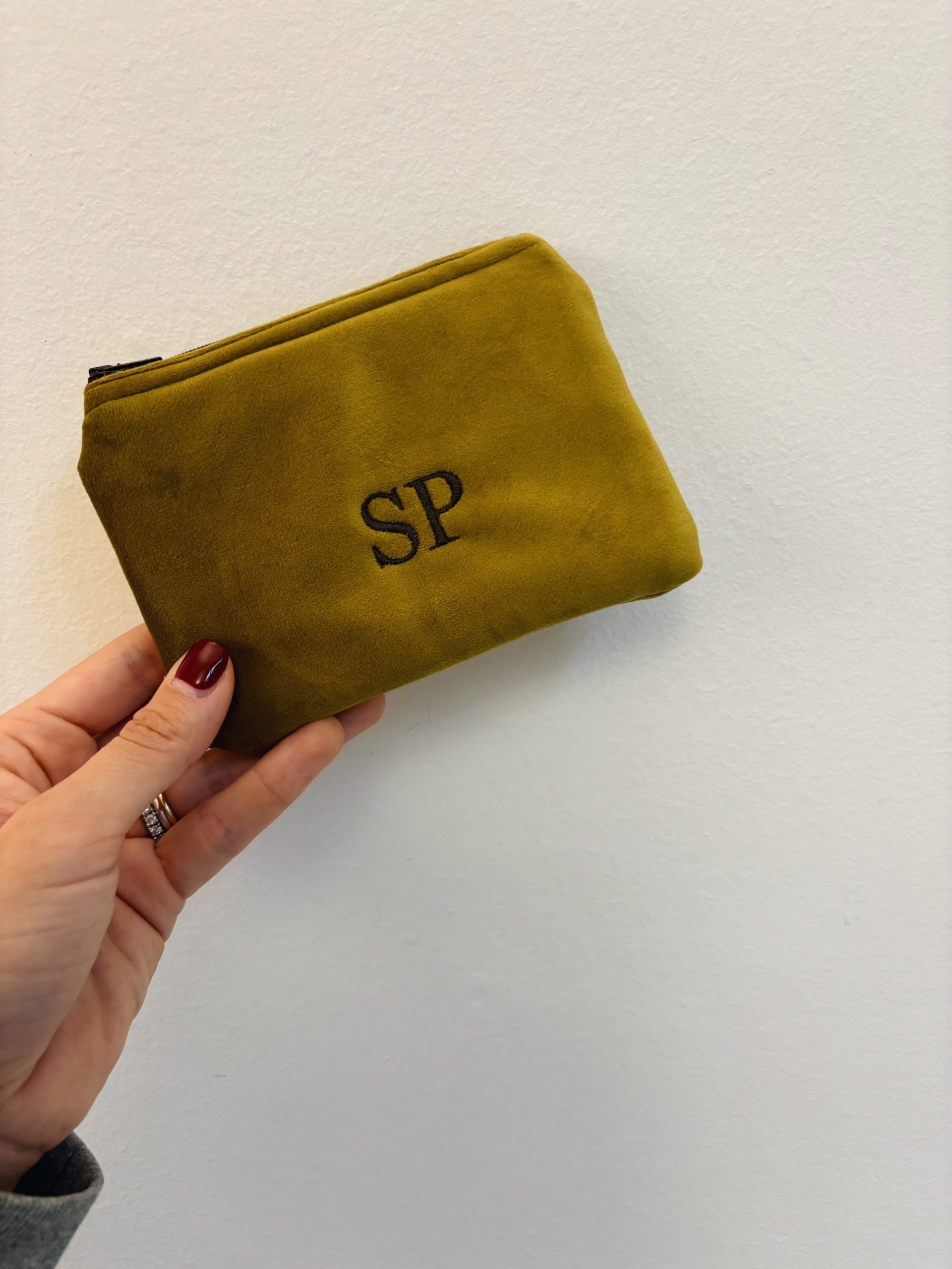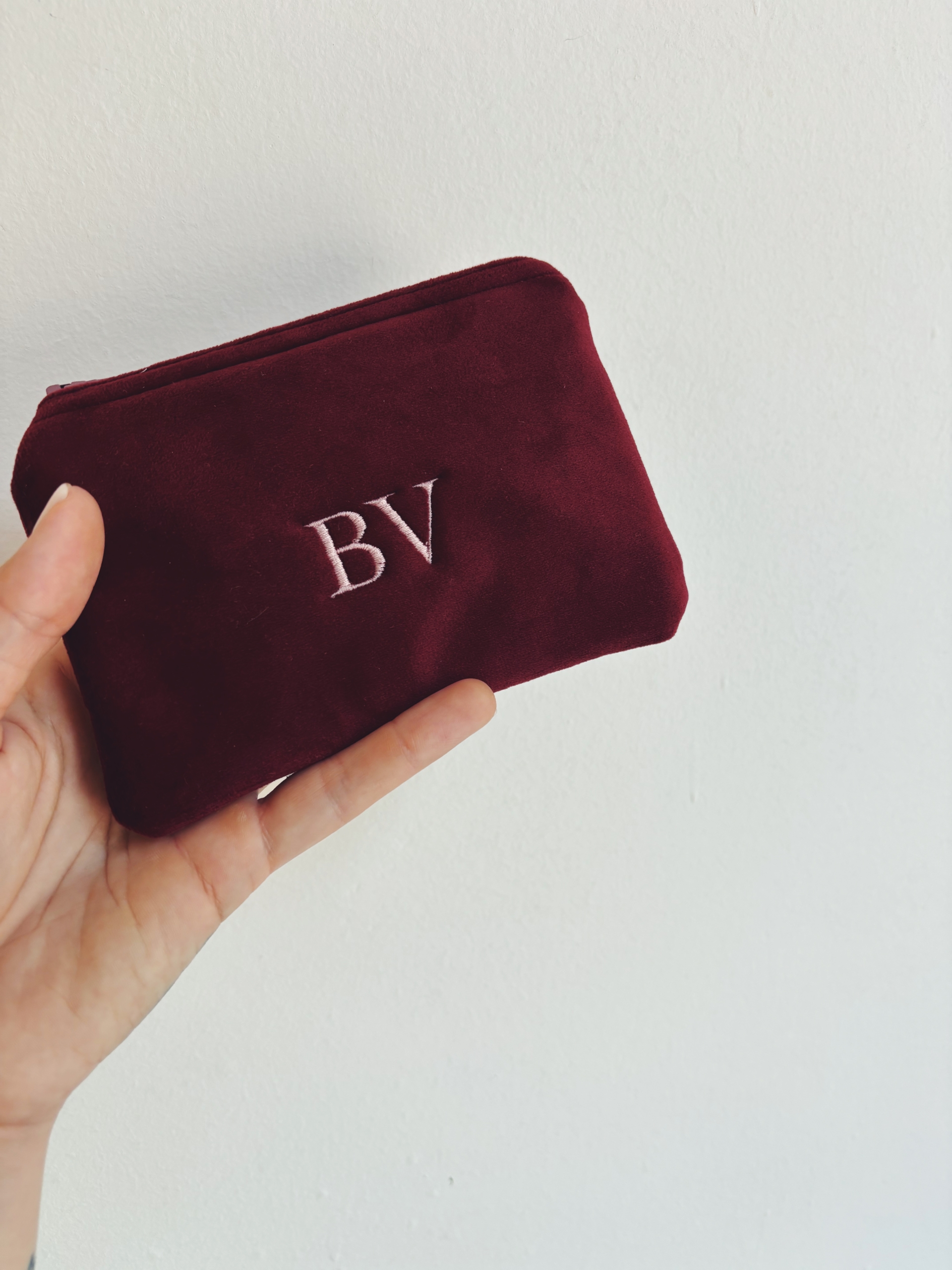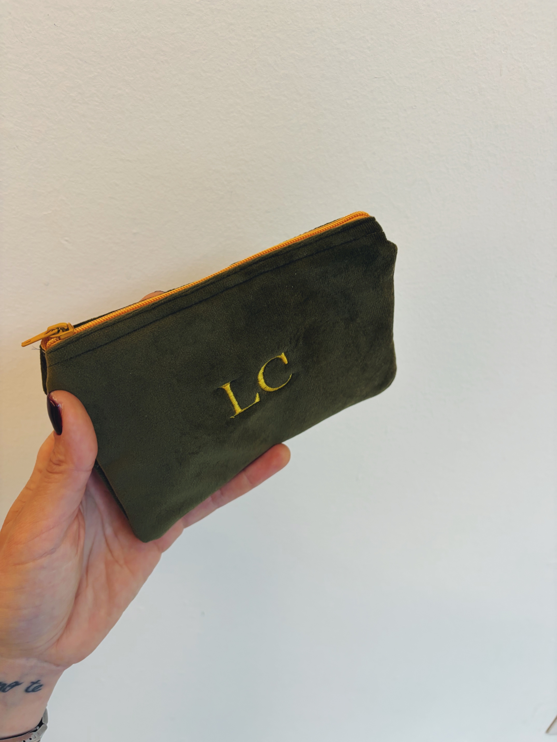 Portafoglio pochette in velluto, foderato internamente e imbottito.