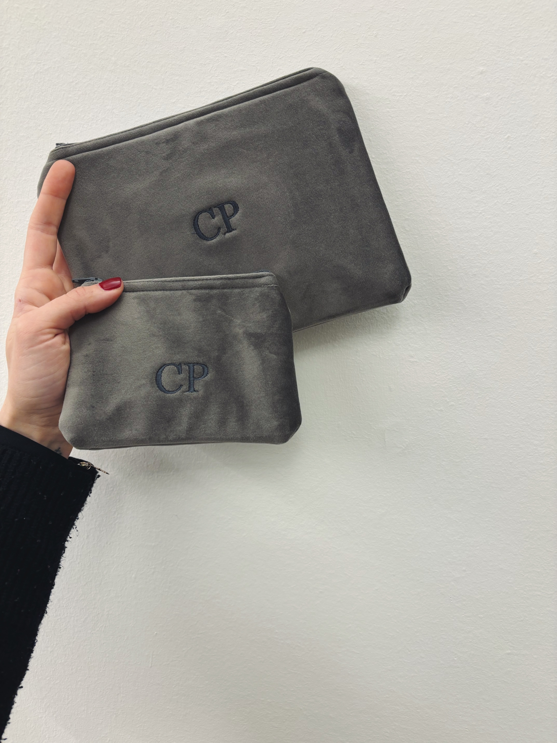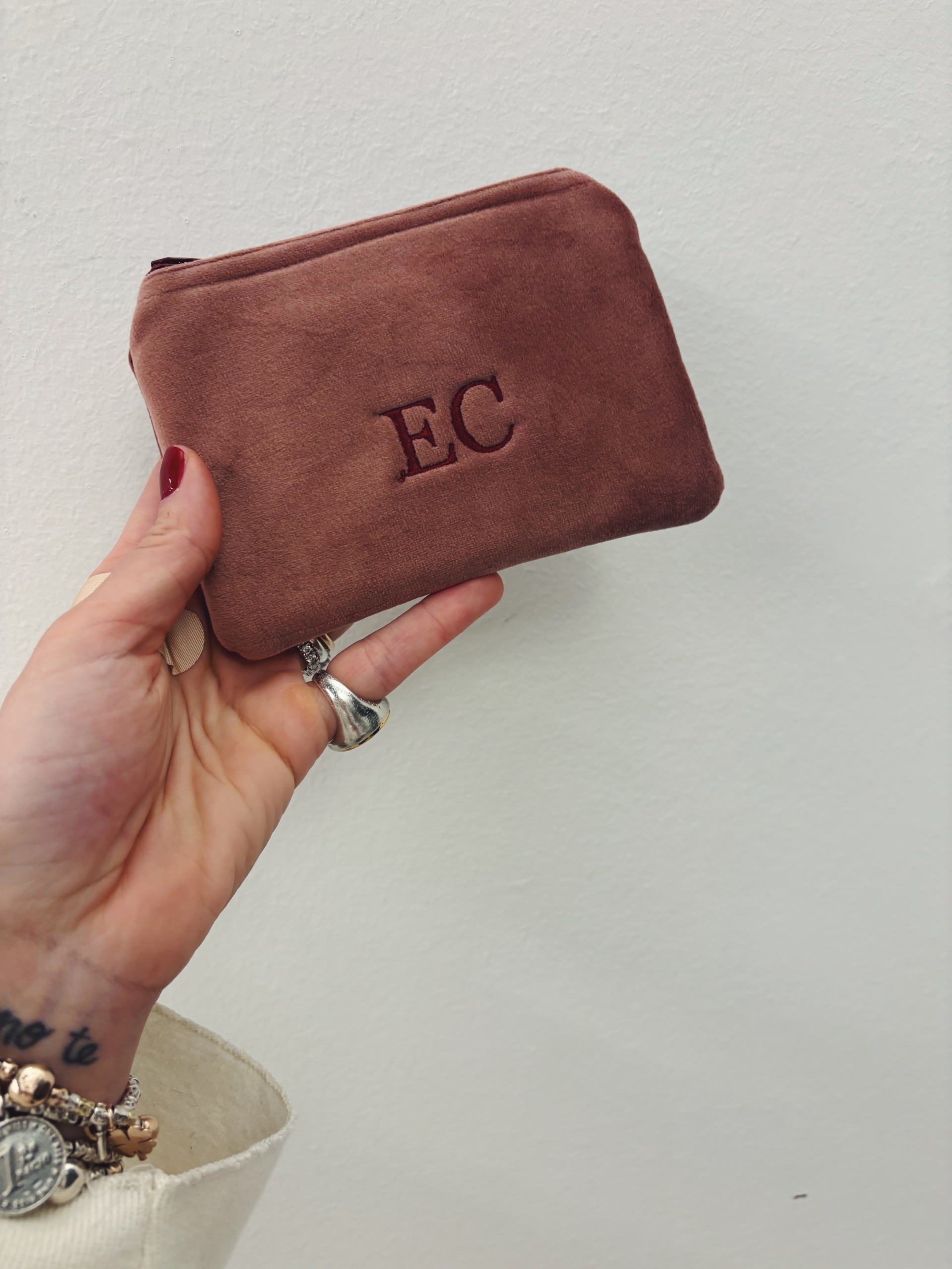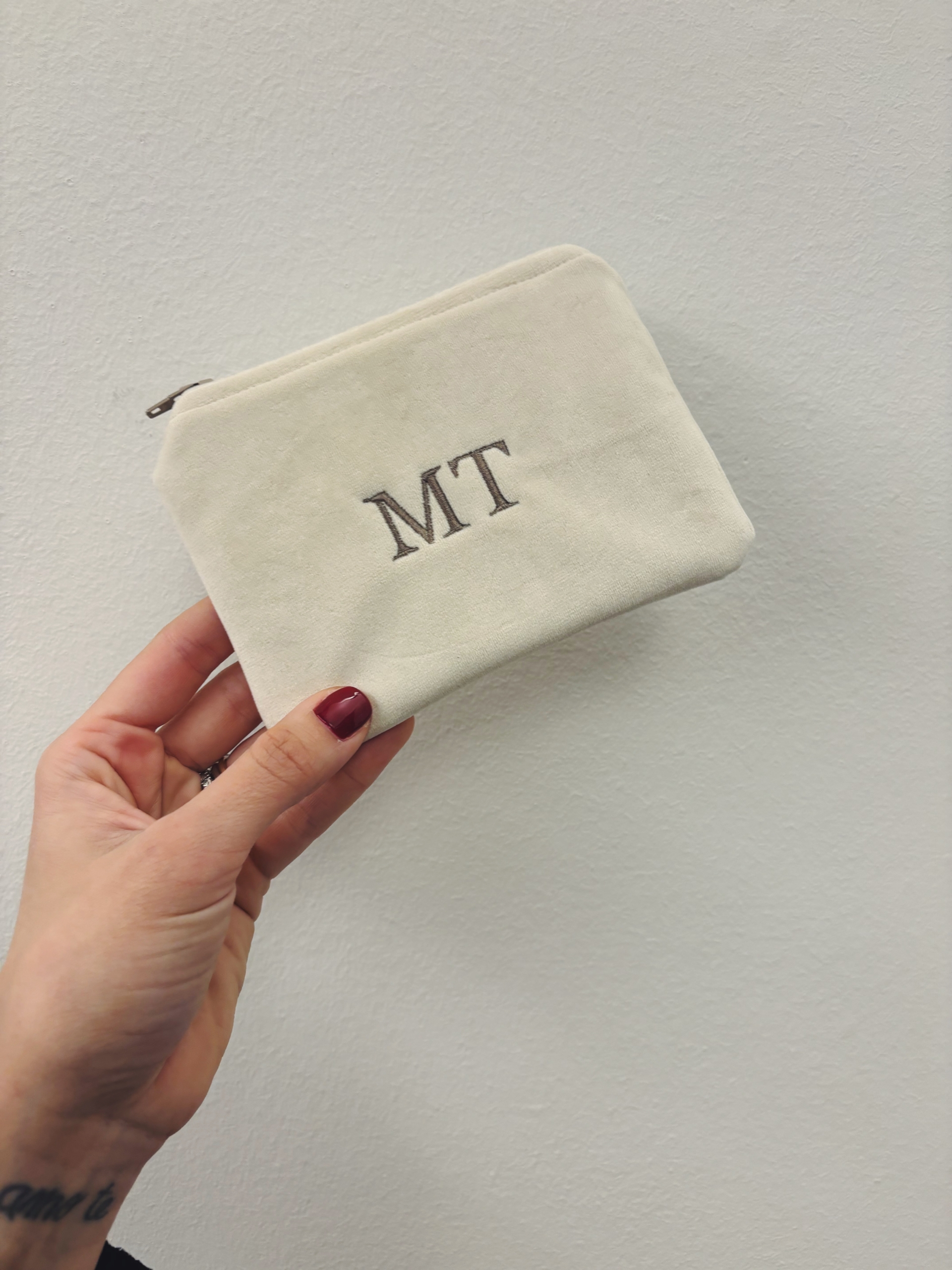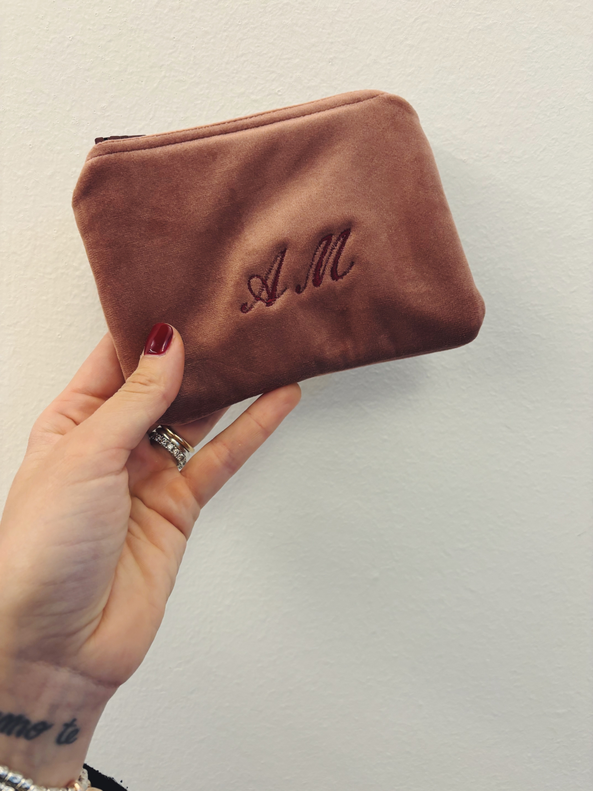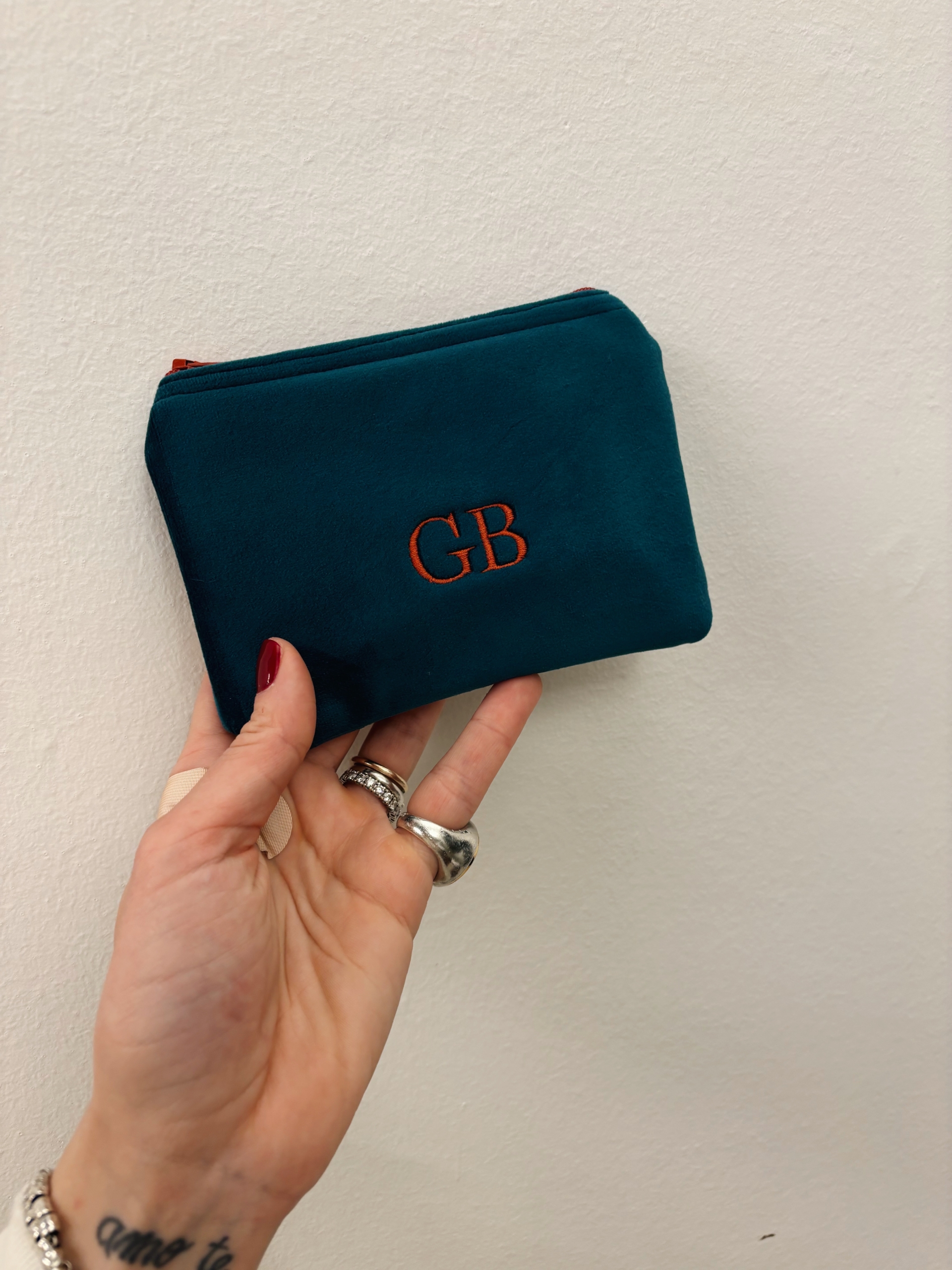 Portafoglio pochette in velluto, foderato internamente e imbottito.