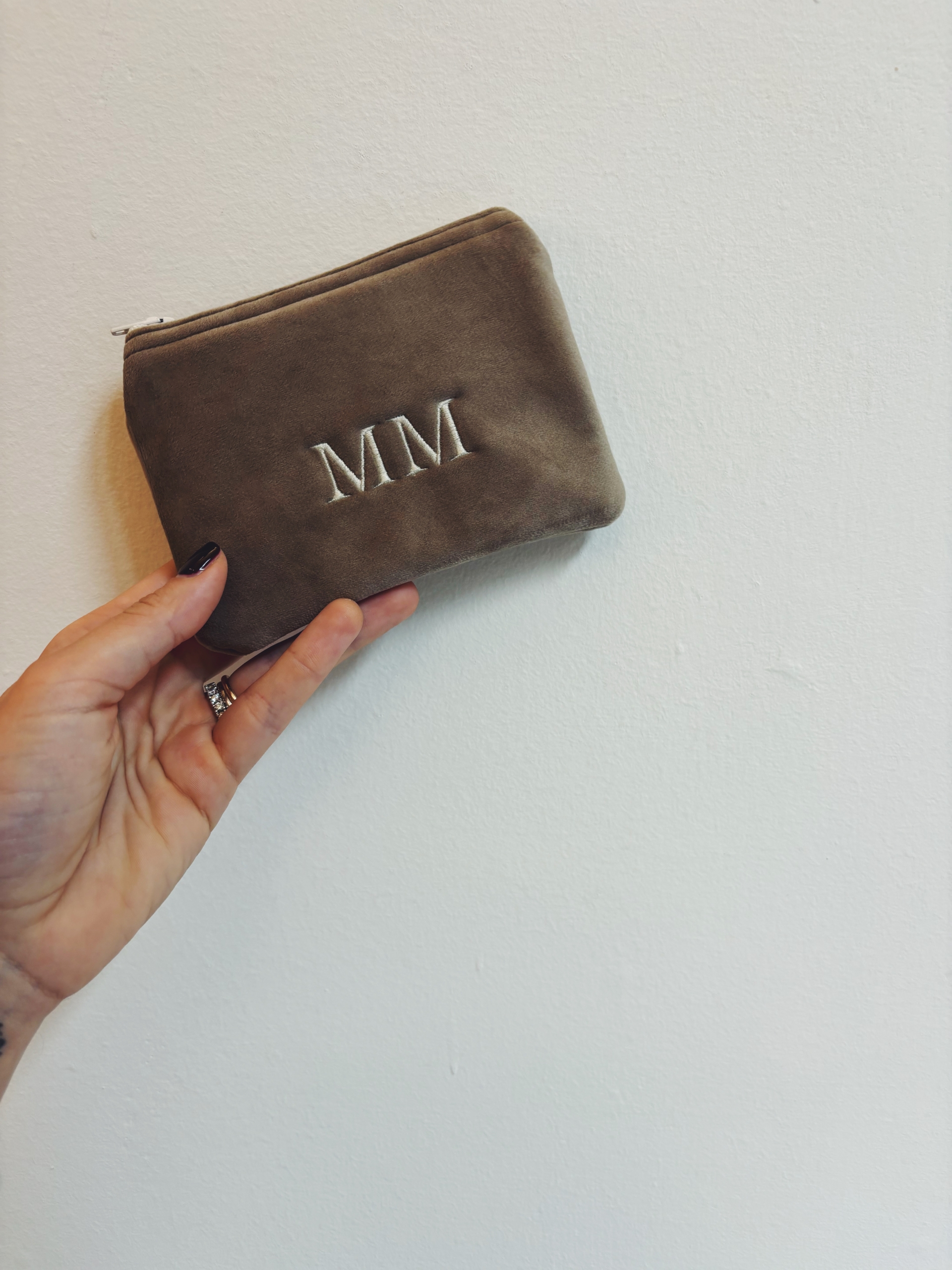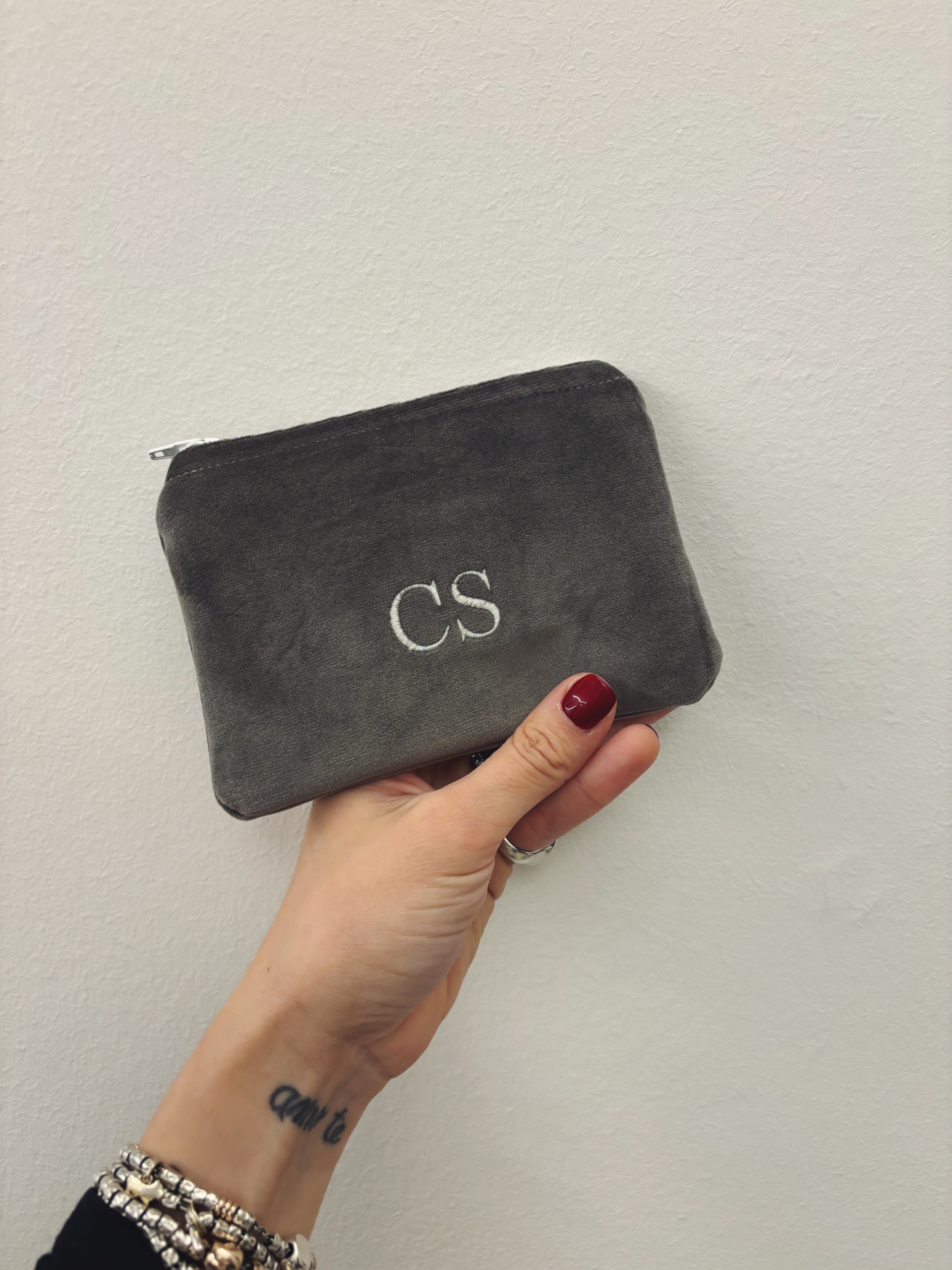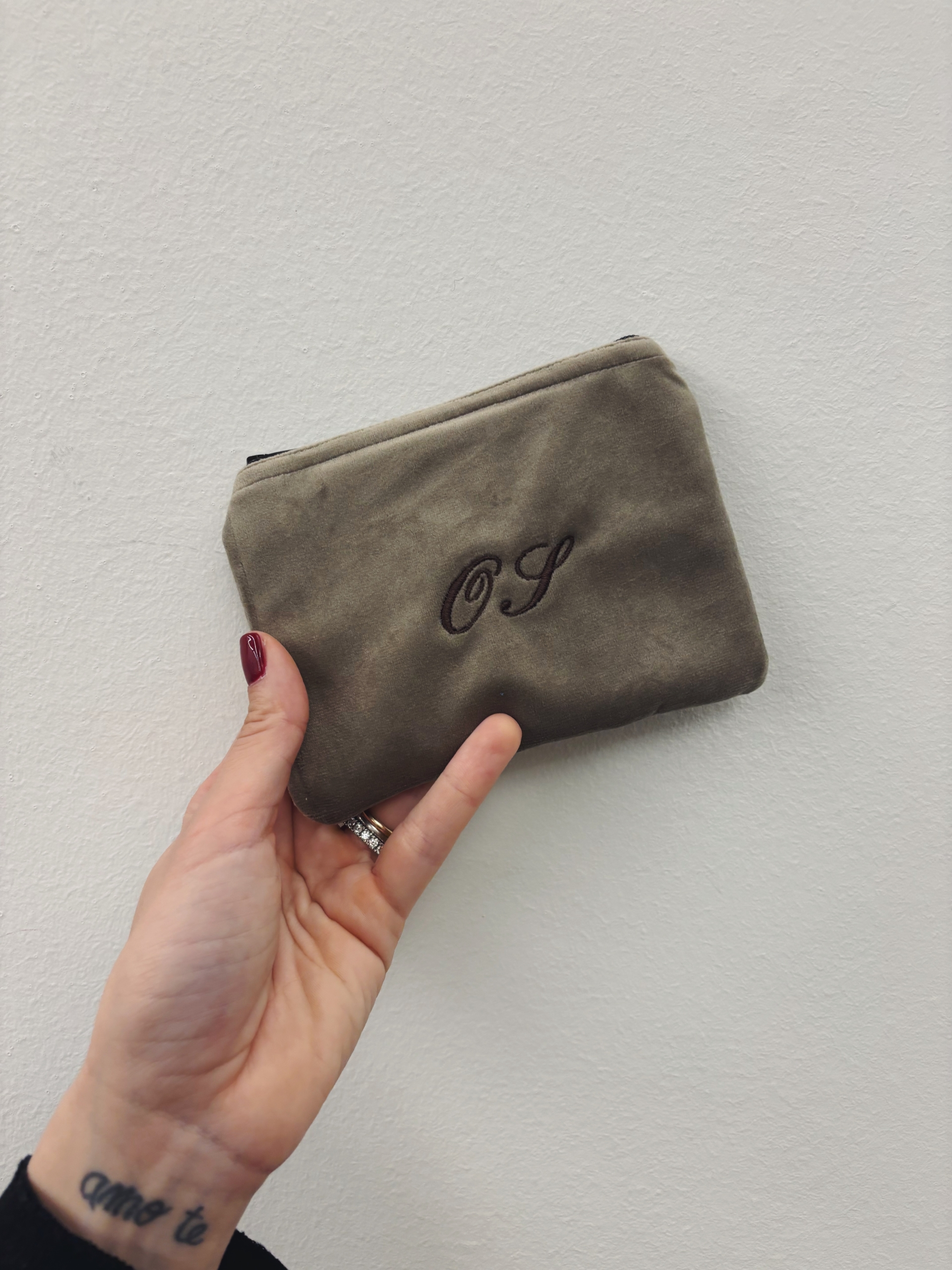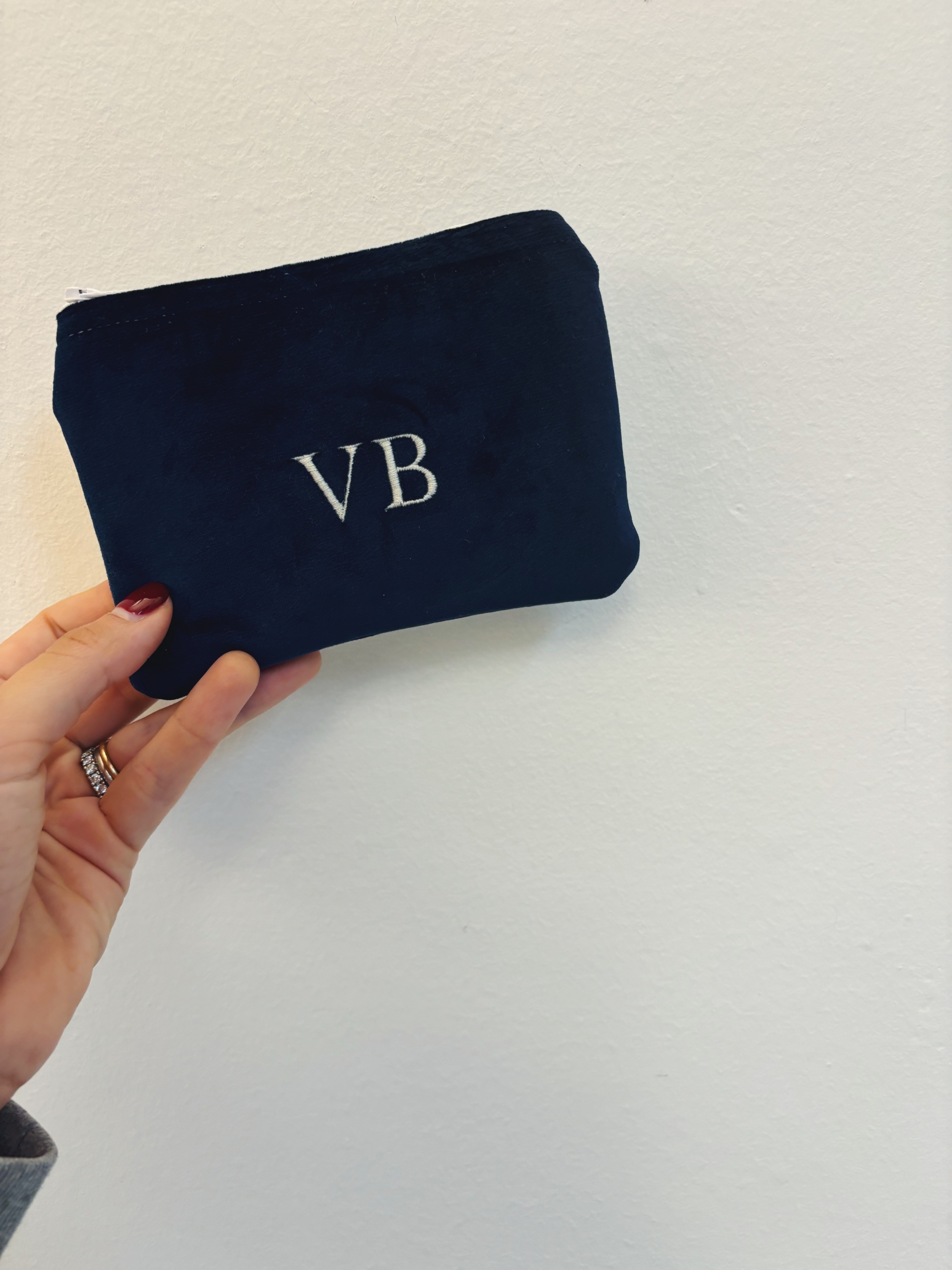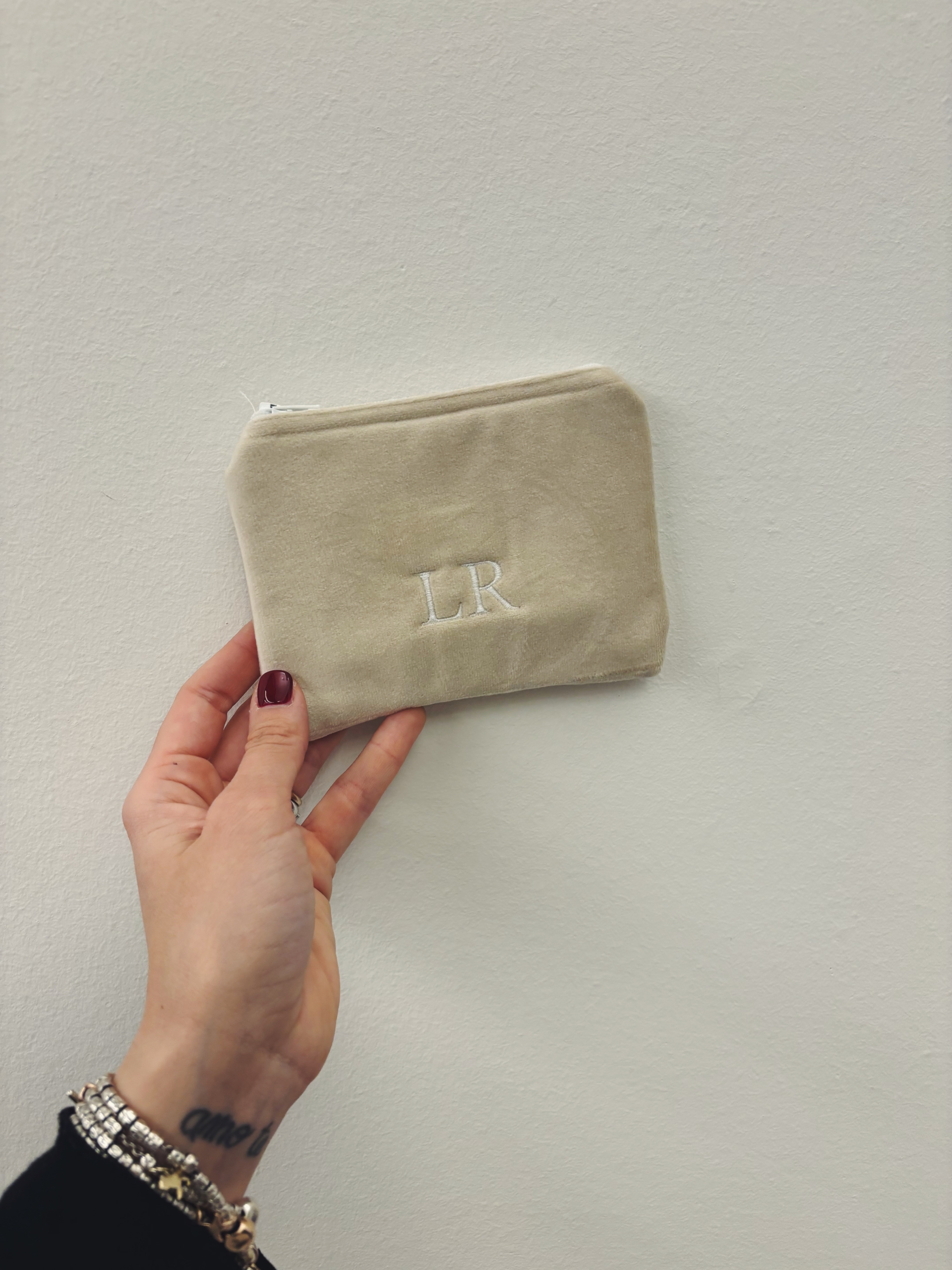 Portafoglio pochette in velluto, foderato internamente e imbottito.