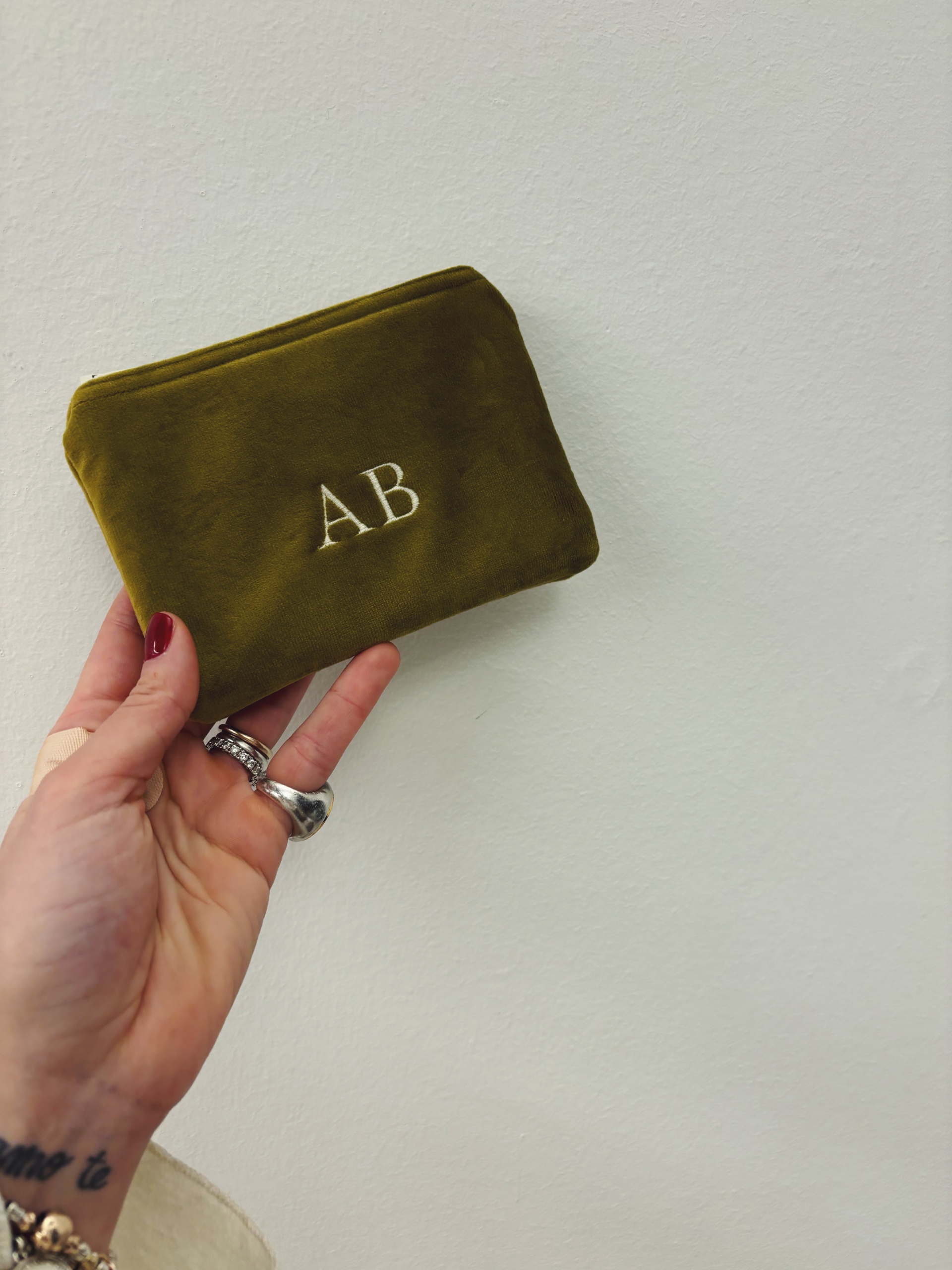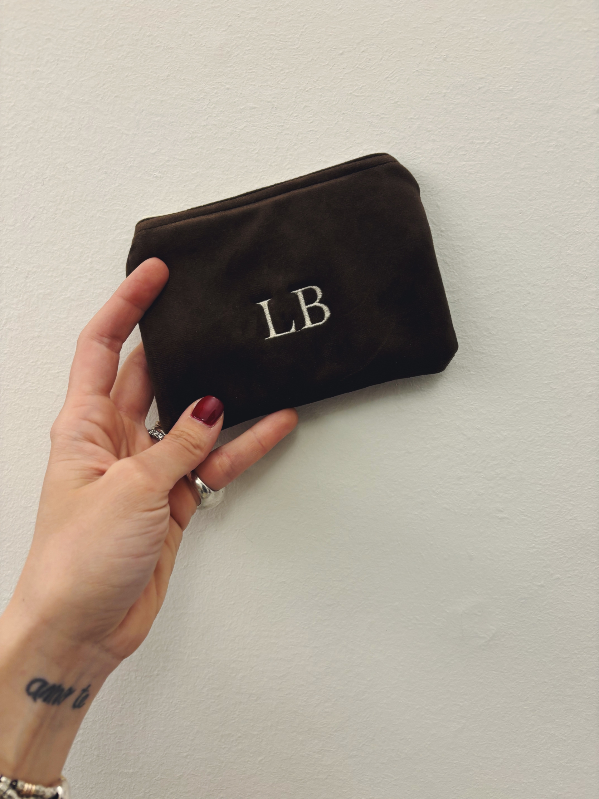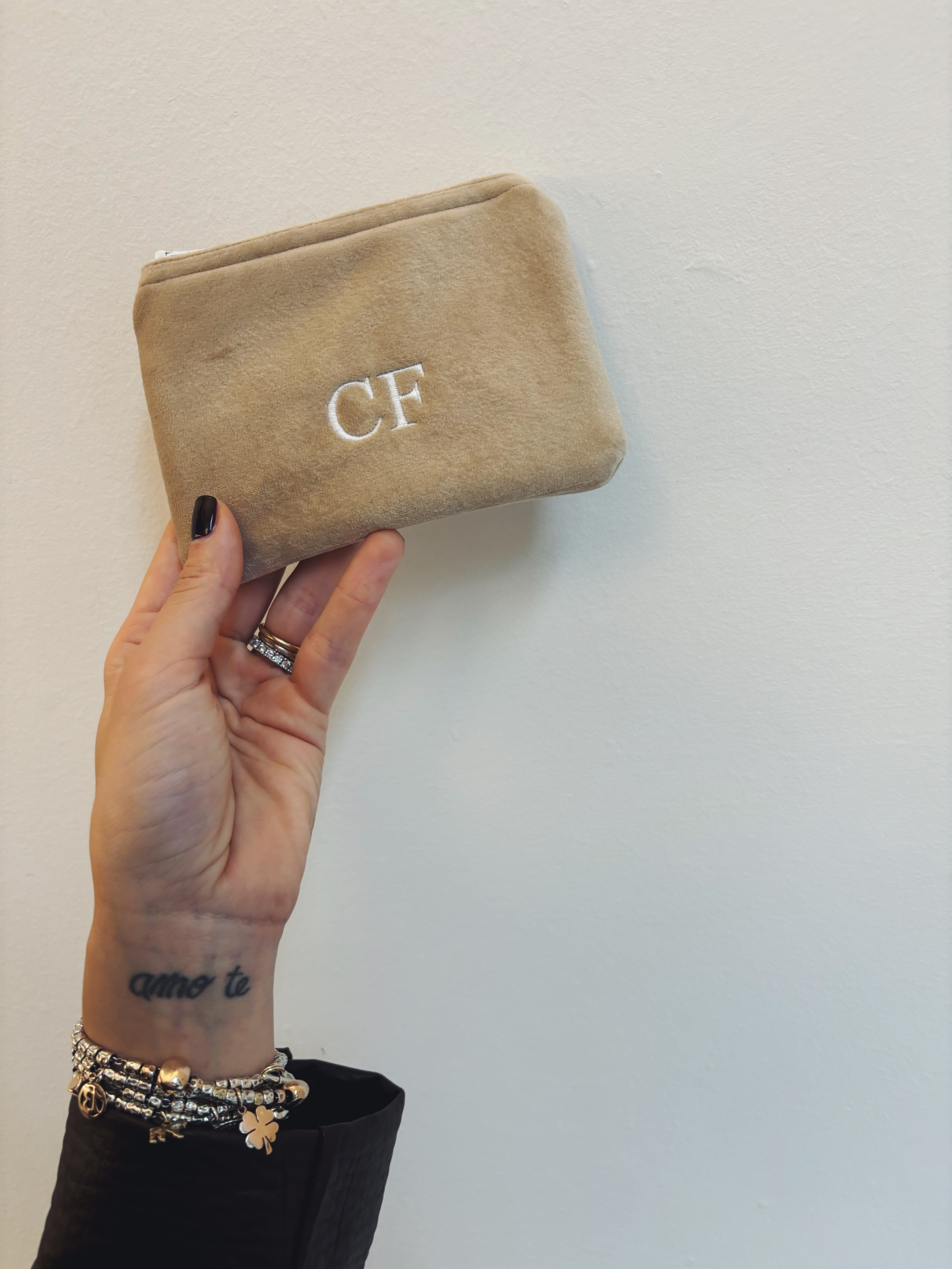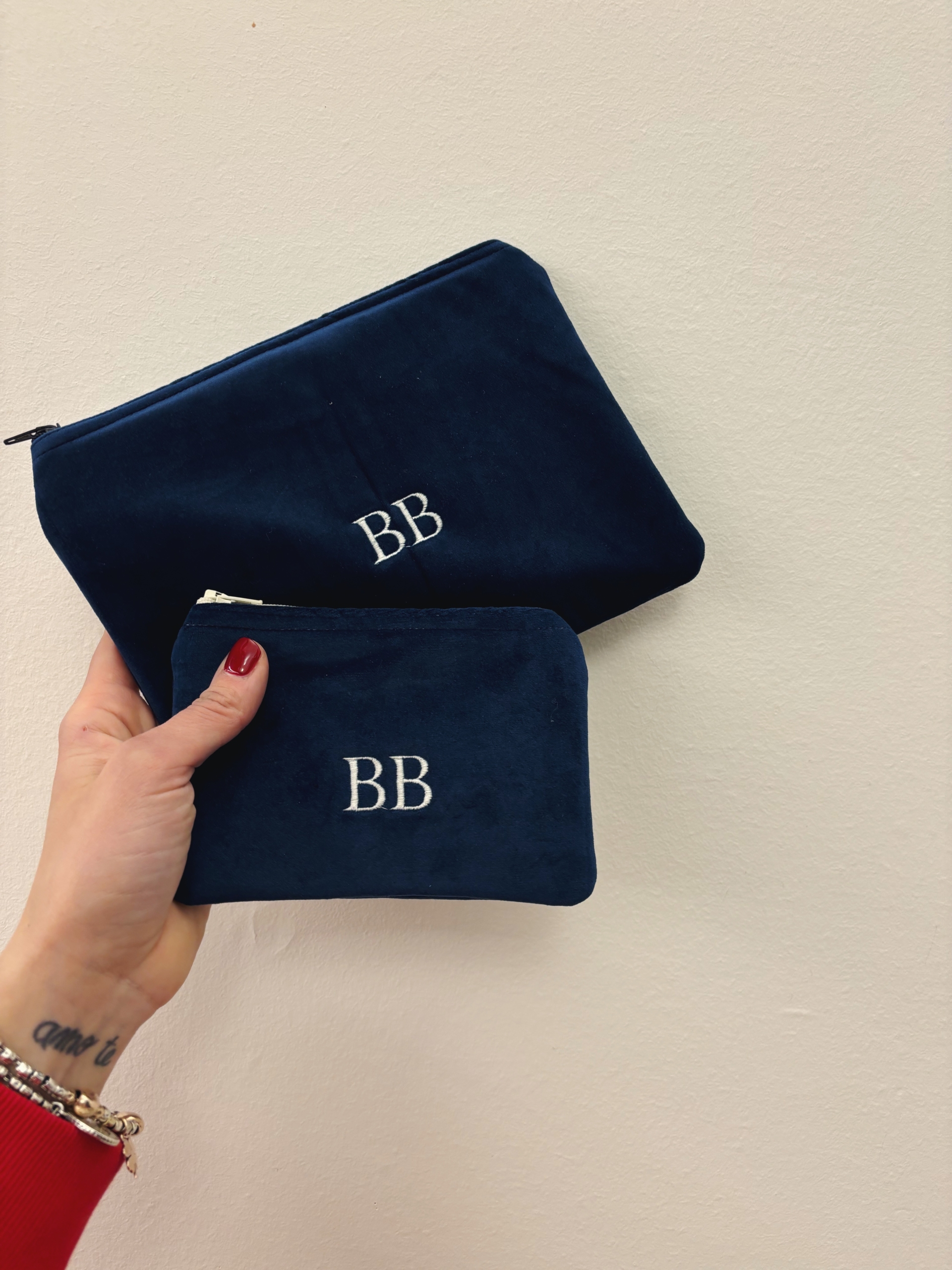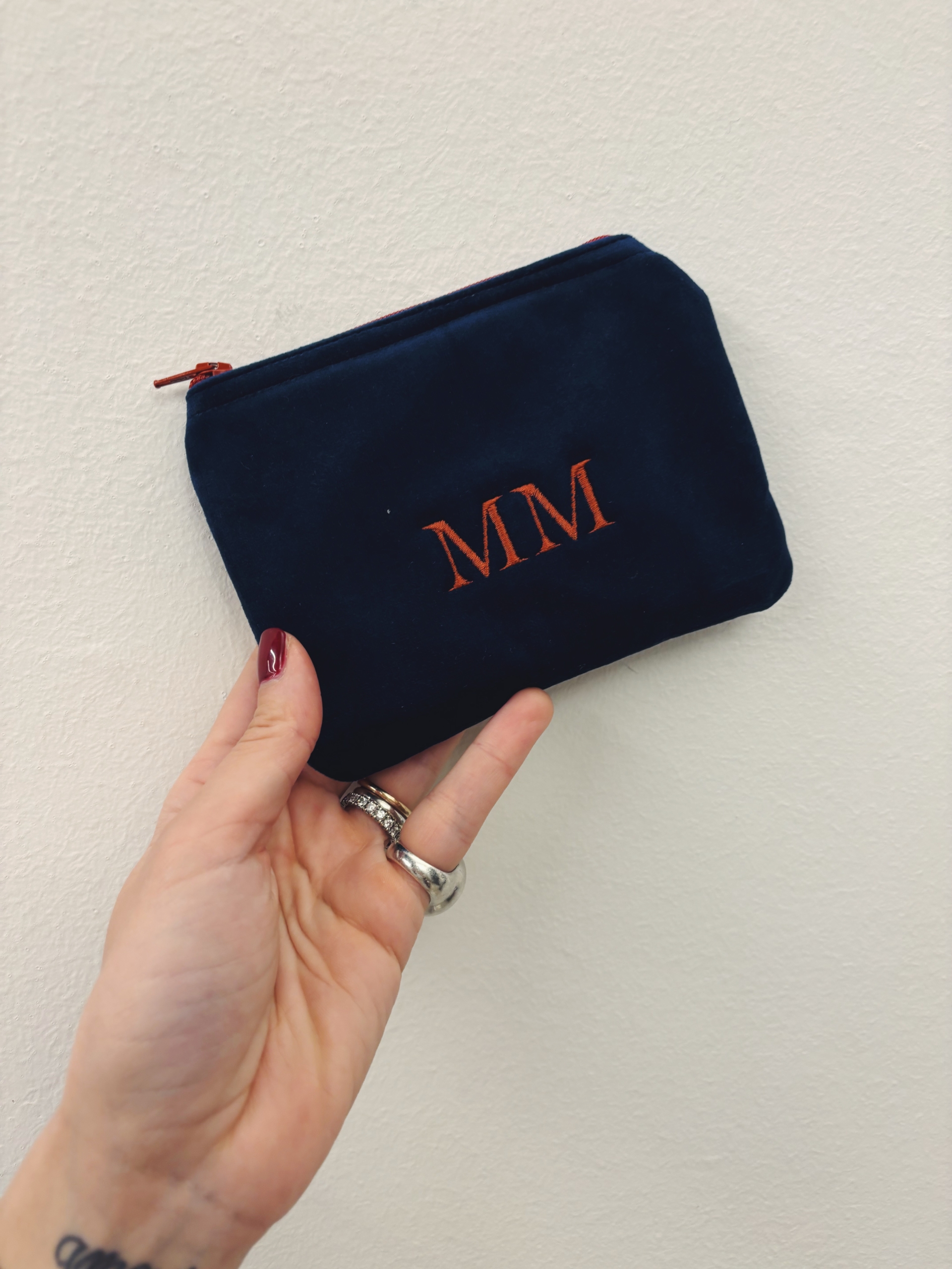 Portafoglio pochette in velluto, foderato internamente e imbottito.
