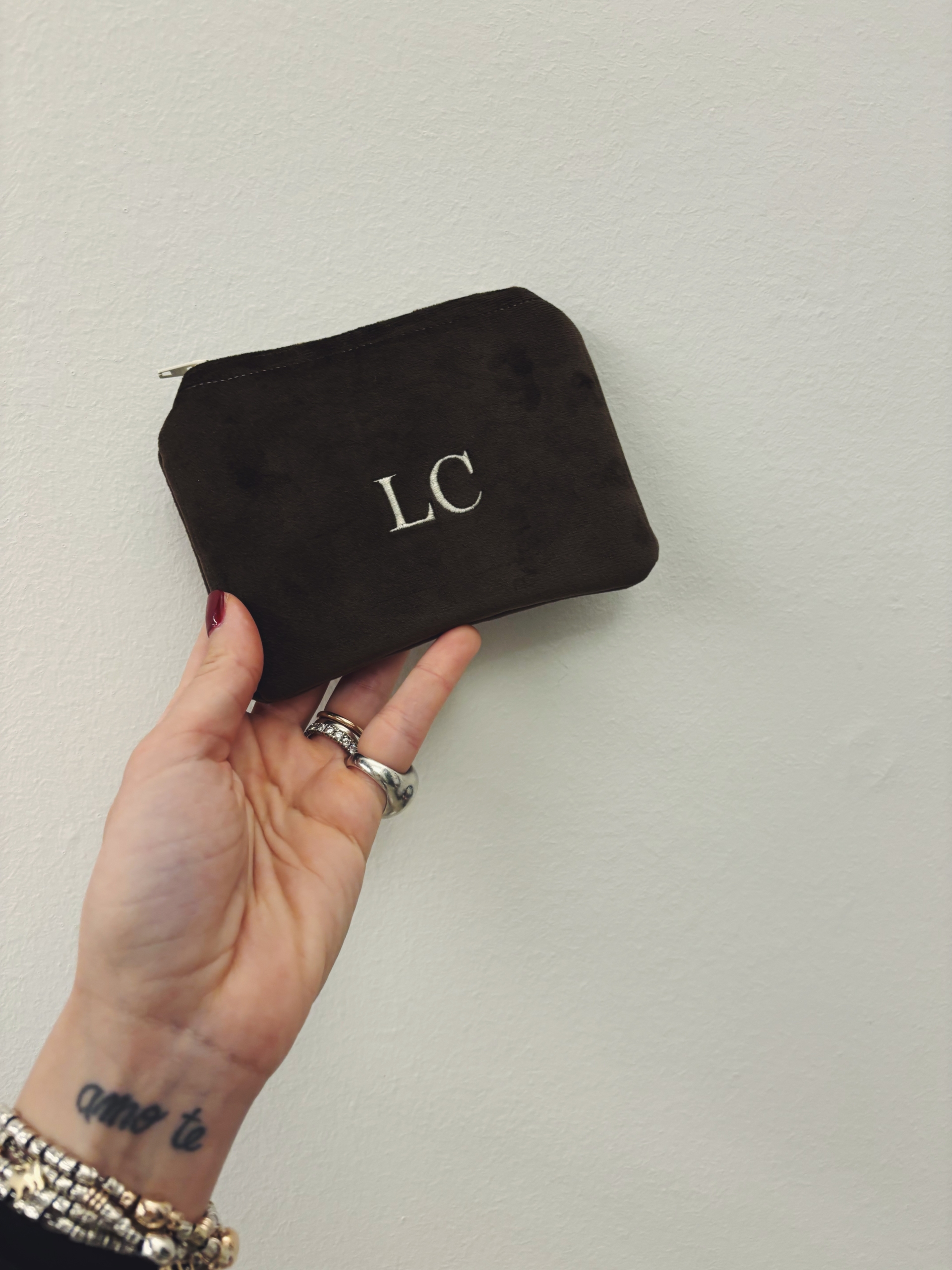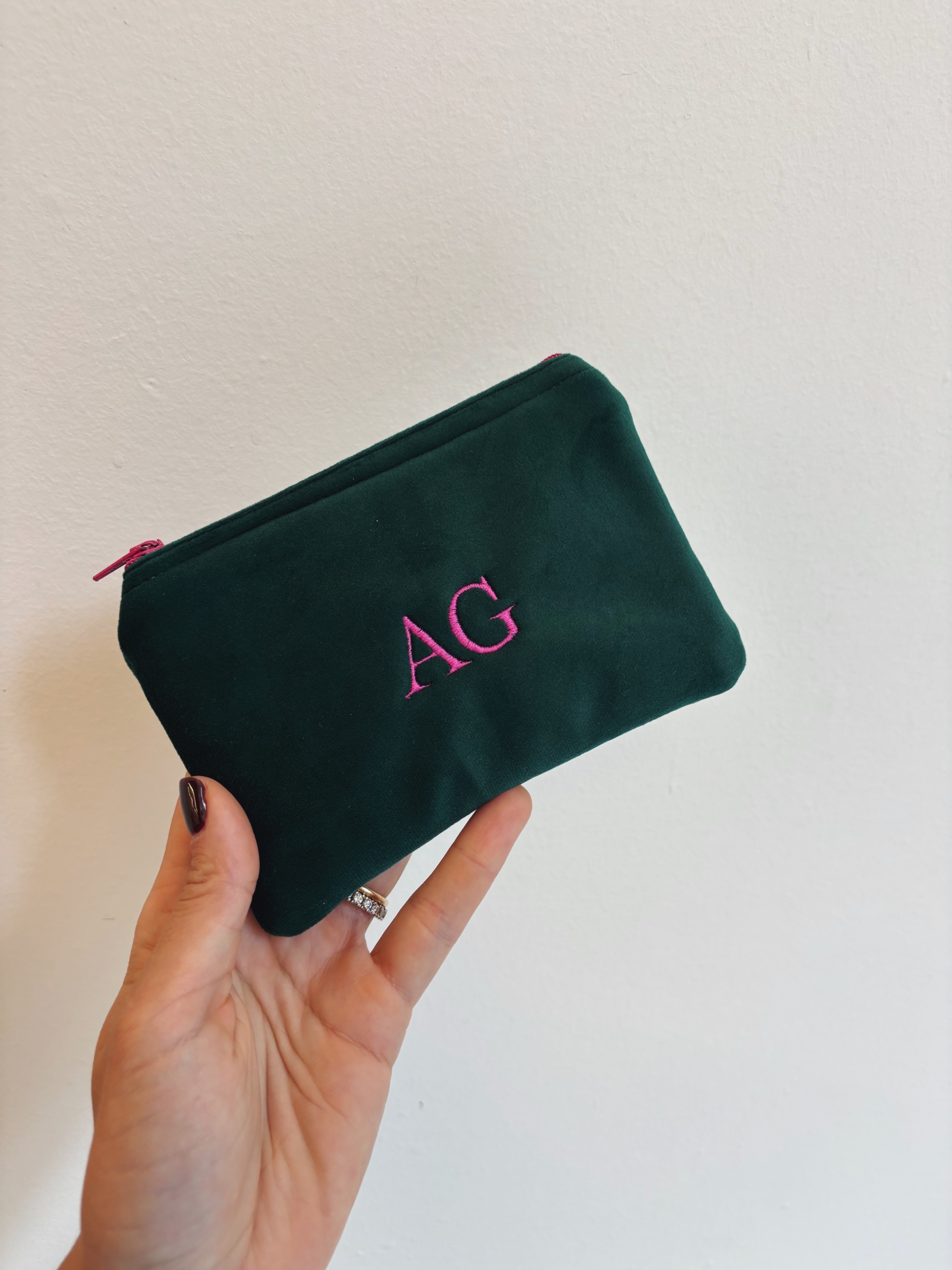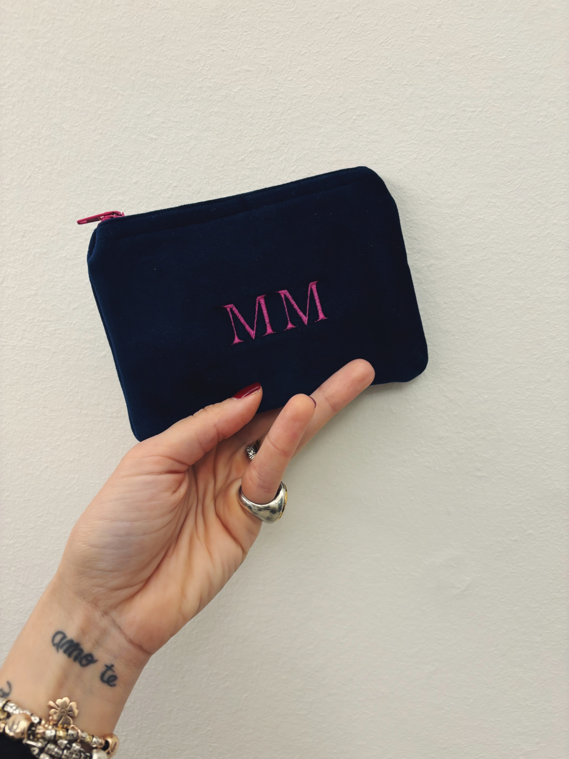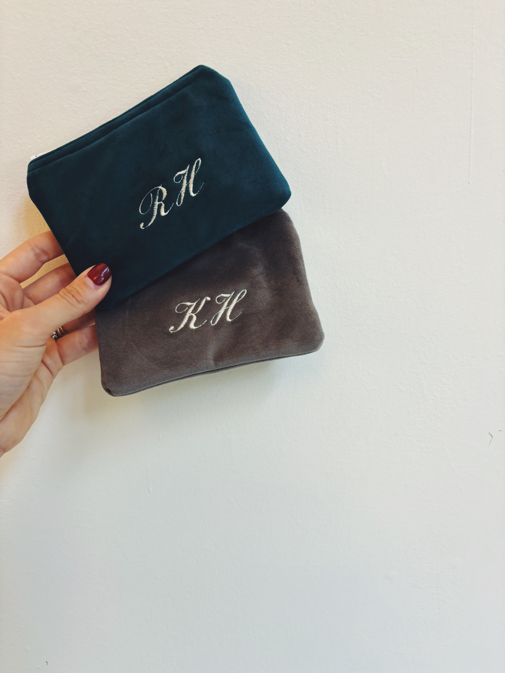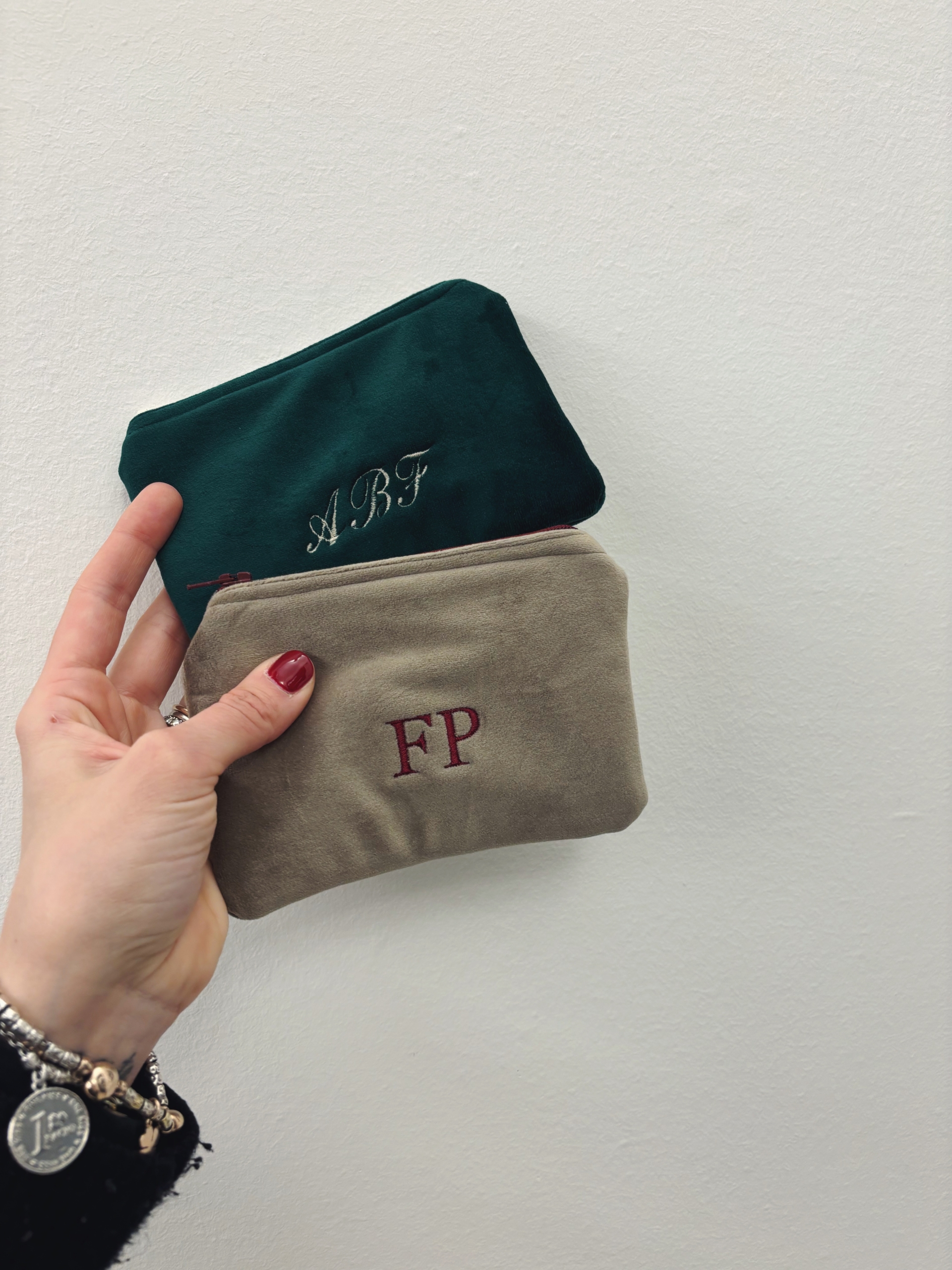 Portafoglio pochette in velluto, foderato internamente e imbottito.