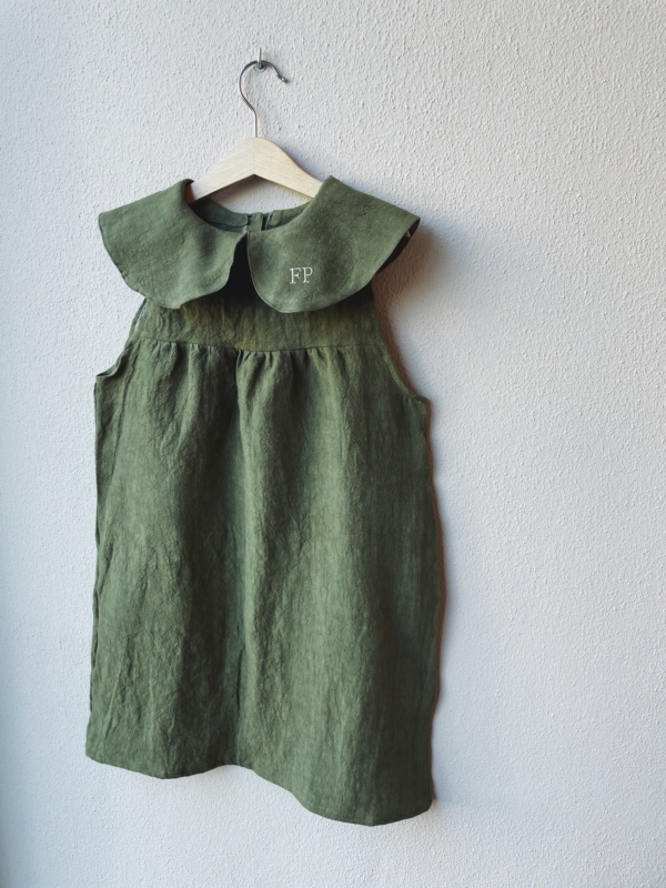 Per le nostre bambine, il vestitino in lino con le iniziali.