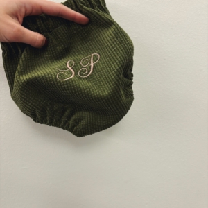 PANTALONE IN VELLUTO CON TASCA RICAMATA